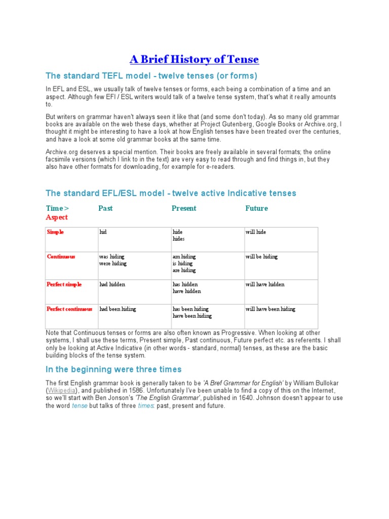 A Brief History Of Tense Pdf Grammatical Tense Perfect Grammar