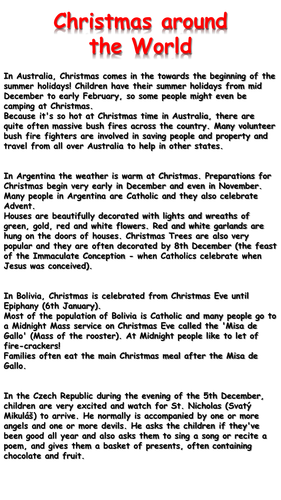 Homework given to pupils over the Christmas period. Reading text about Christmas in the UK blank cards or slips of paper for writing vocabulary items Planning sheet for homework task. Christmas Around the World Assembly Catherine Bell DOC.